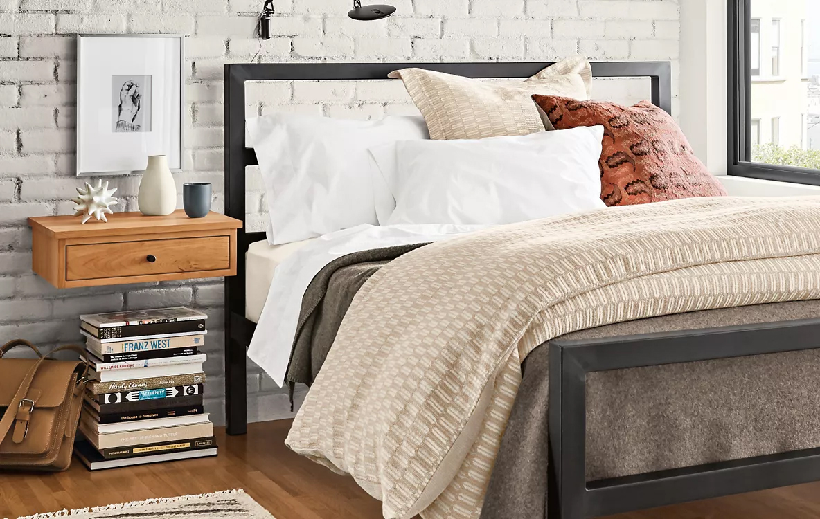 - Откажитесь от громоздкой кровати. Тонкие прямые линии металла позволят максимально использовать каждый сантиметр в вашей спальни и сделают пространство более открытым. Светлые породы дерева и нержавеющая сталь - материалы вне времени.