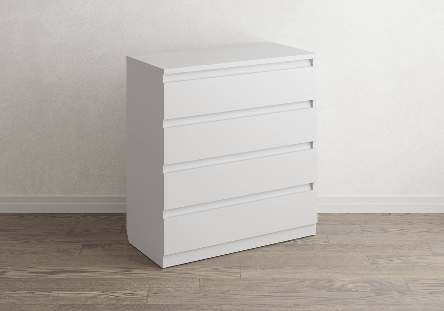 Aksel - комод без лишнего. Лаконичная скандинавская форма, четыре варианта цвета и скос под плинтус позволяют вписать его в любую комнату: спальню, гостиную, детскую или домашний кабинет и встать вплотную к стене без зазора. Надёжные шариковые направляющие обеспечивают плавное и лёгкое выдвижение ящиков без рывков и перекосов.