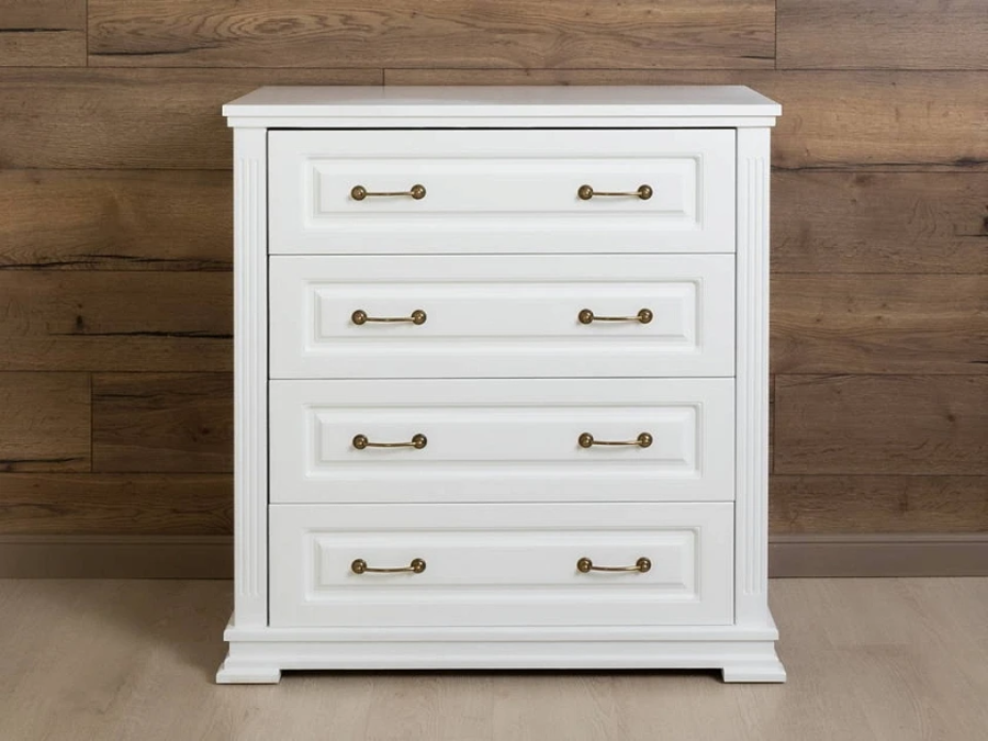 Milena - комод для тех, кто выбирает мебель один раз и надолго. Каркас и фасады из натурального массива, защитное лаковое покрытие, которое проявляет неповторимую текстуру дерева и никакой бумажной плёнки, которая вздувается через год. Четыре глубоких ящика на шариковых направляющих полного выдвижения делают хранение удобным, а вес 61 кг. говорит о плотности материала без лишних слов.