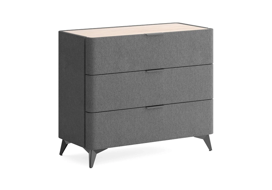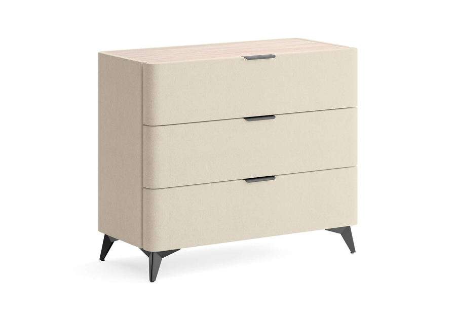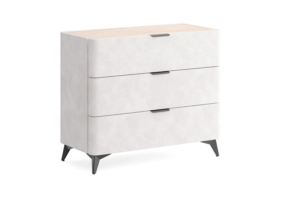 Sheldon - комод, который выделяется не за счёт громкой формы, а за счёт точных деталей. Мягкий корпус в сочетании со столешницей из ЛДСП "Дуб Сонома", изящные металлические ручки и высокие чёрные ножки - всё это работает вместе, создавая образ дорогой мебели. Три ящика на скрытых направляющих с доводчиками закрываются без хлопка и не выпадают при случайном толчке.