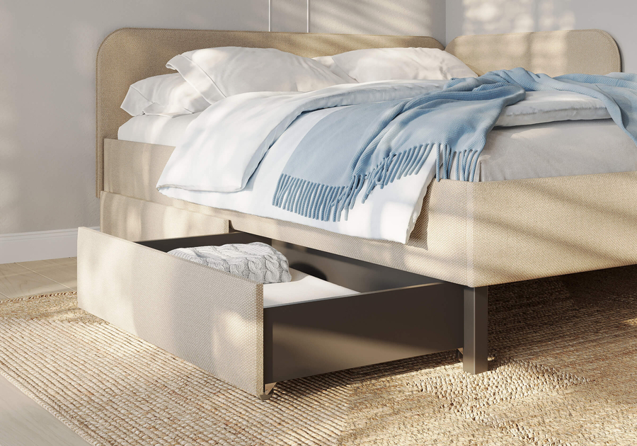 Ящики позволяют задействовать пространство под кроватью, не загромождая спальню. Они мобильны, их легко выкатывать и задвигать, что удобно для быстрого доступа к вещам, а также легкой уборки под кроватью.